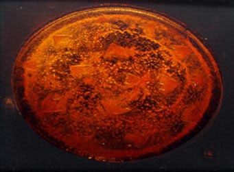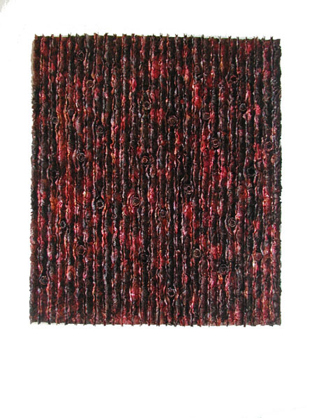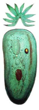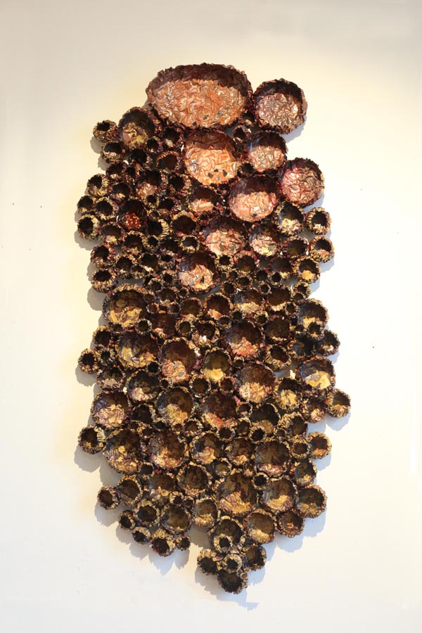 Kesähuivi, kupari, pakotustyö, alla värjätty messinkilevy