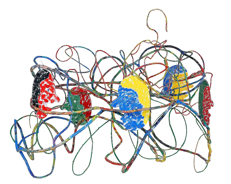 Maa herää, teräsverkko ja -lanka, voimapaperi, akryyliväri