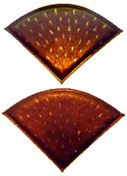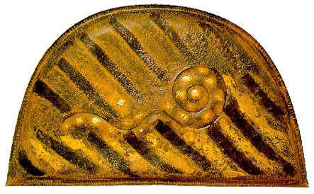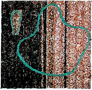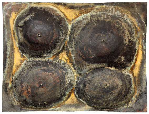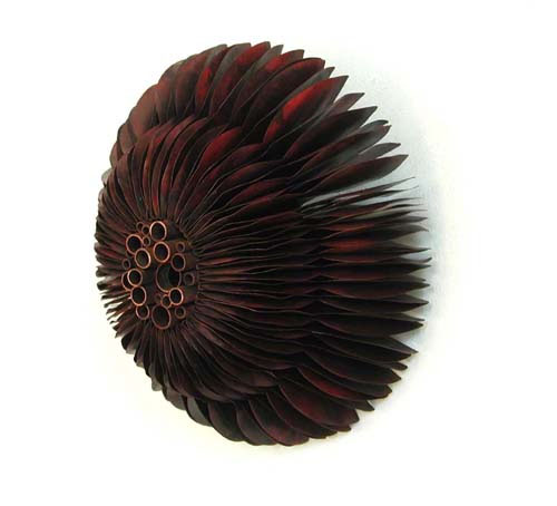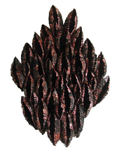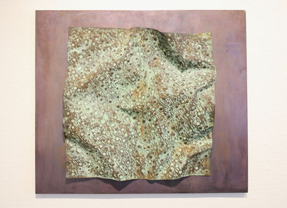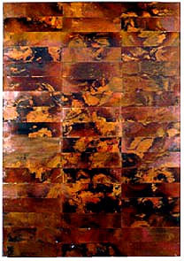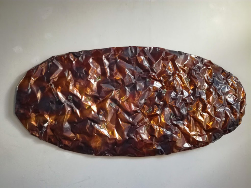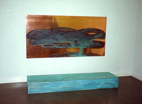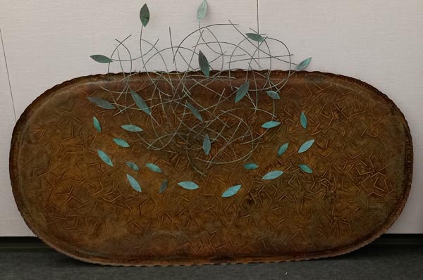 Kesähuivi, kupari, pakotustyö, alla värjätty messinkilevy