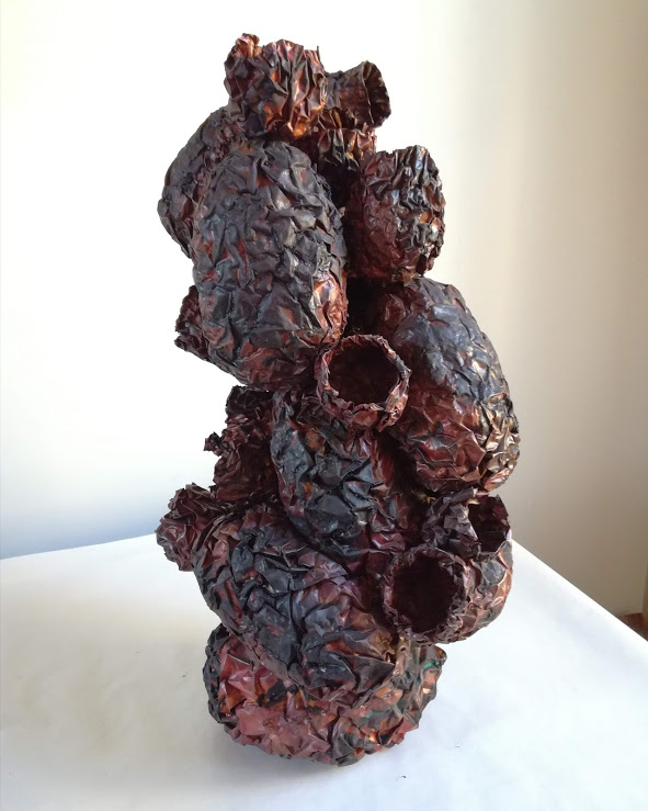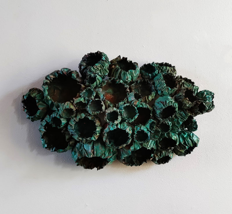 Talvinen puutarha, kupari, pakotustyö, patinointi ja kipsi