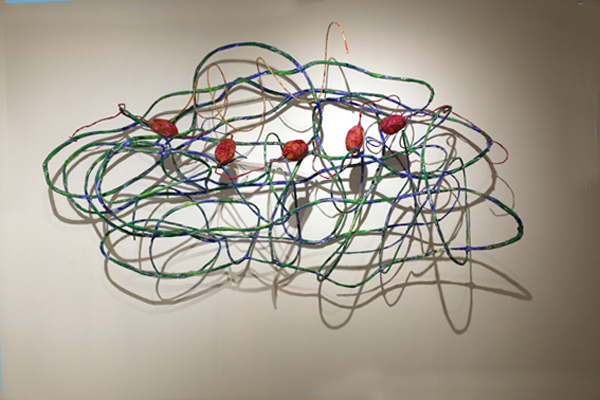 Maa herää, teräsverkko ja -lanka, voimapaperi, akryyliväri