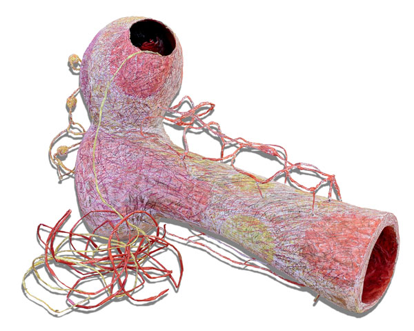 Vasemman jalan hermo, teräsverkko, teräslanka, voimapaperi, akryyliväri, värikynä