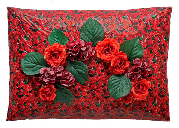 Happines pillow, steel mesh, gift wrapping paper, kraft paper, paper flowers